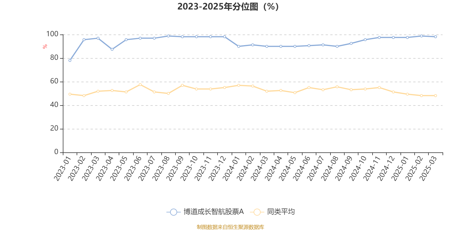 通过所选区间该基金净值增长率分位图,可以观察该基金与同类基金业绩比较情况。图为坐标原点到区间内某时点的净值增长率在同类基金中的分位数。