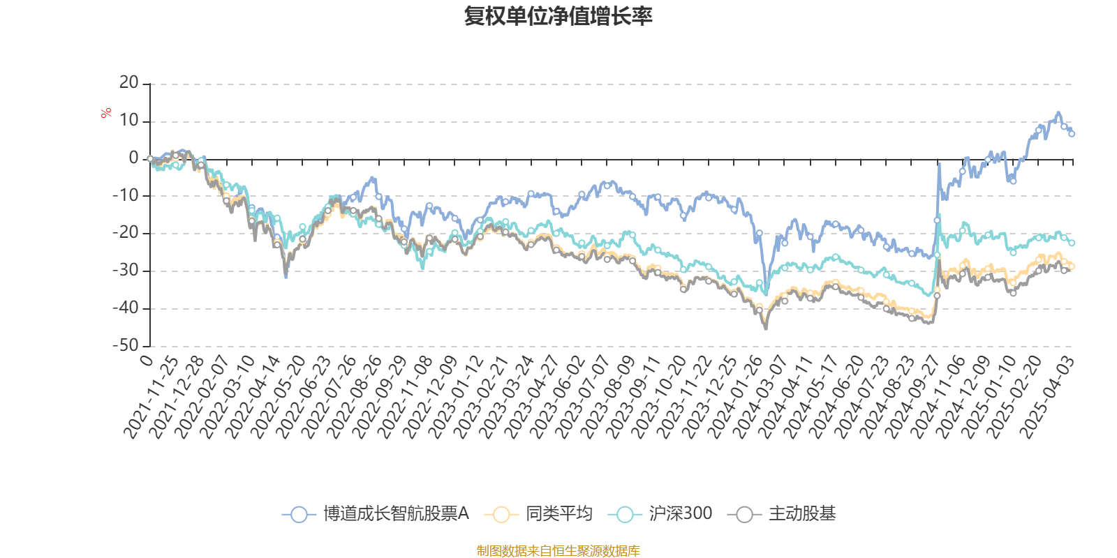截至4月3日,博道成长智航股票A近三个月复权单位净值增长率为13.31%,位于同类可比基金16/166;近半年复权单位净值增长率为16.09%,位于同类可比基金8/166;近一年复权单位净值增长率为31.14%,位于同类可比基金9/165;近三年复权单位净值增长率为25.33%,位于同类可比基金6/156。
