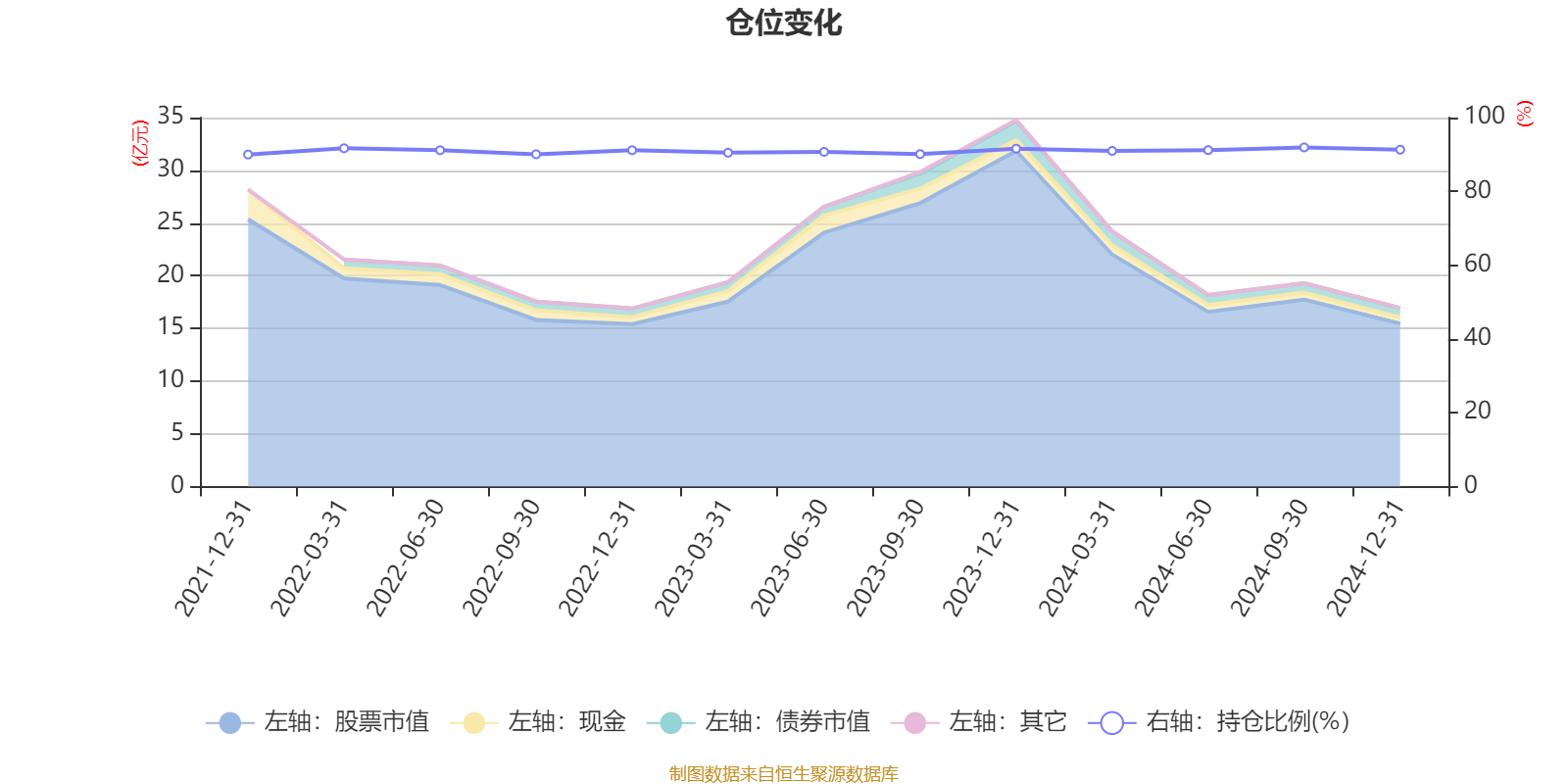 据定期报告数据统计,近三年平均股票仓位为91.03%,同类平均为88.12%。2024年三季度末基金达到91.92%的最高仓位,2021年末最低,为89.99%。